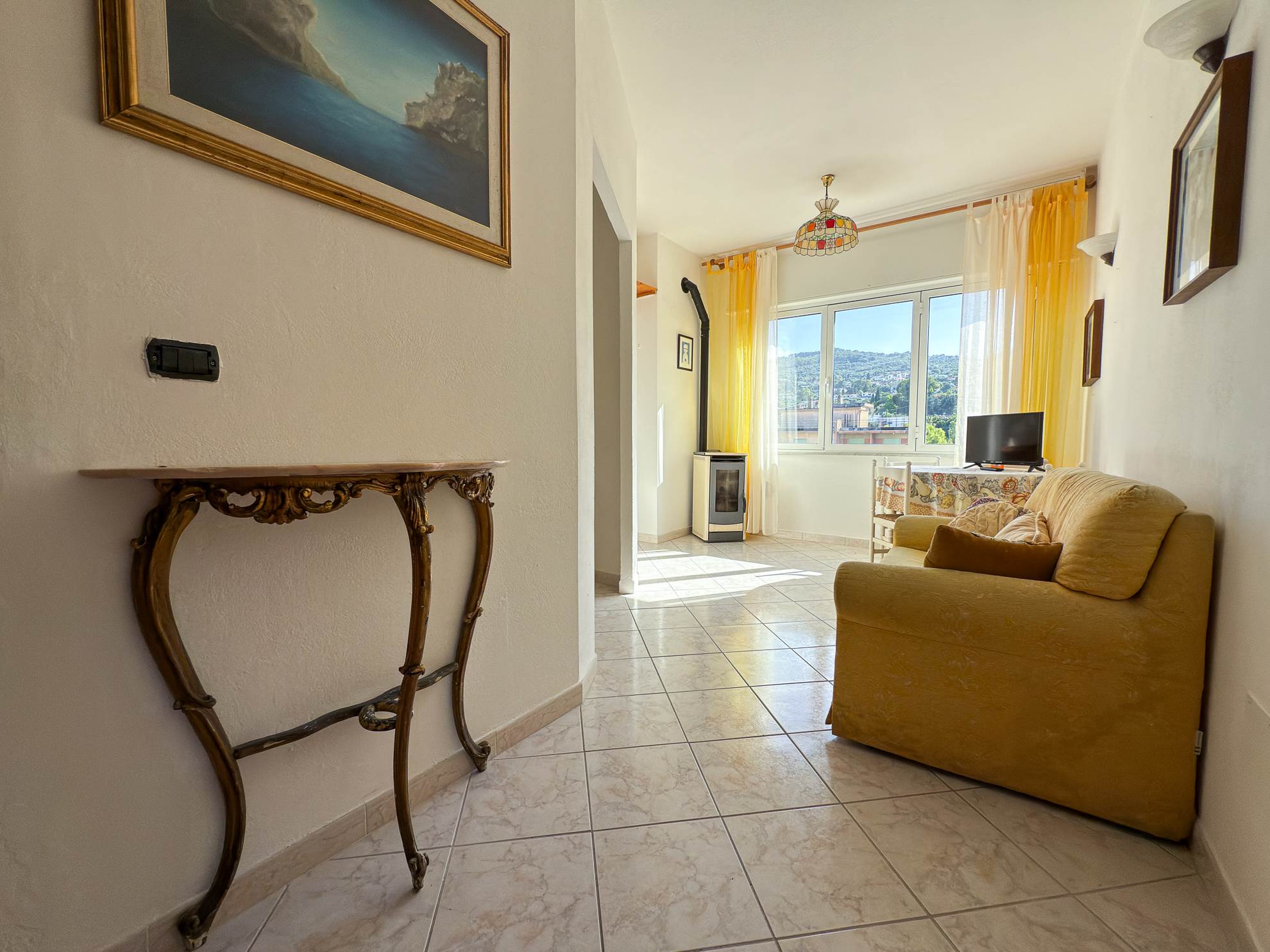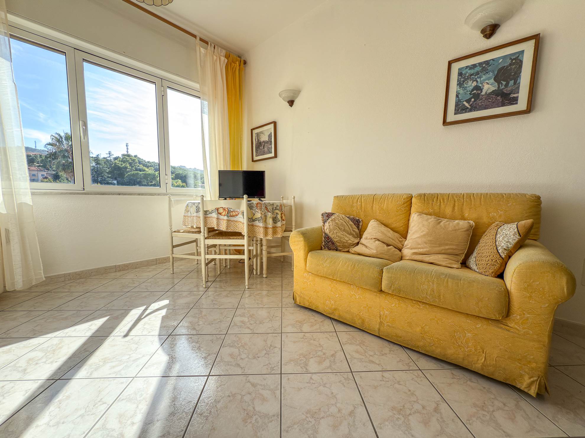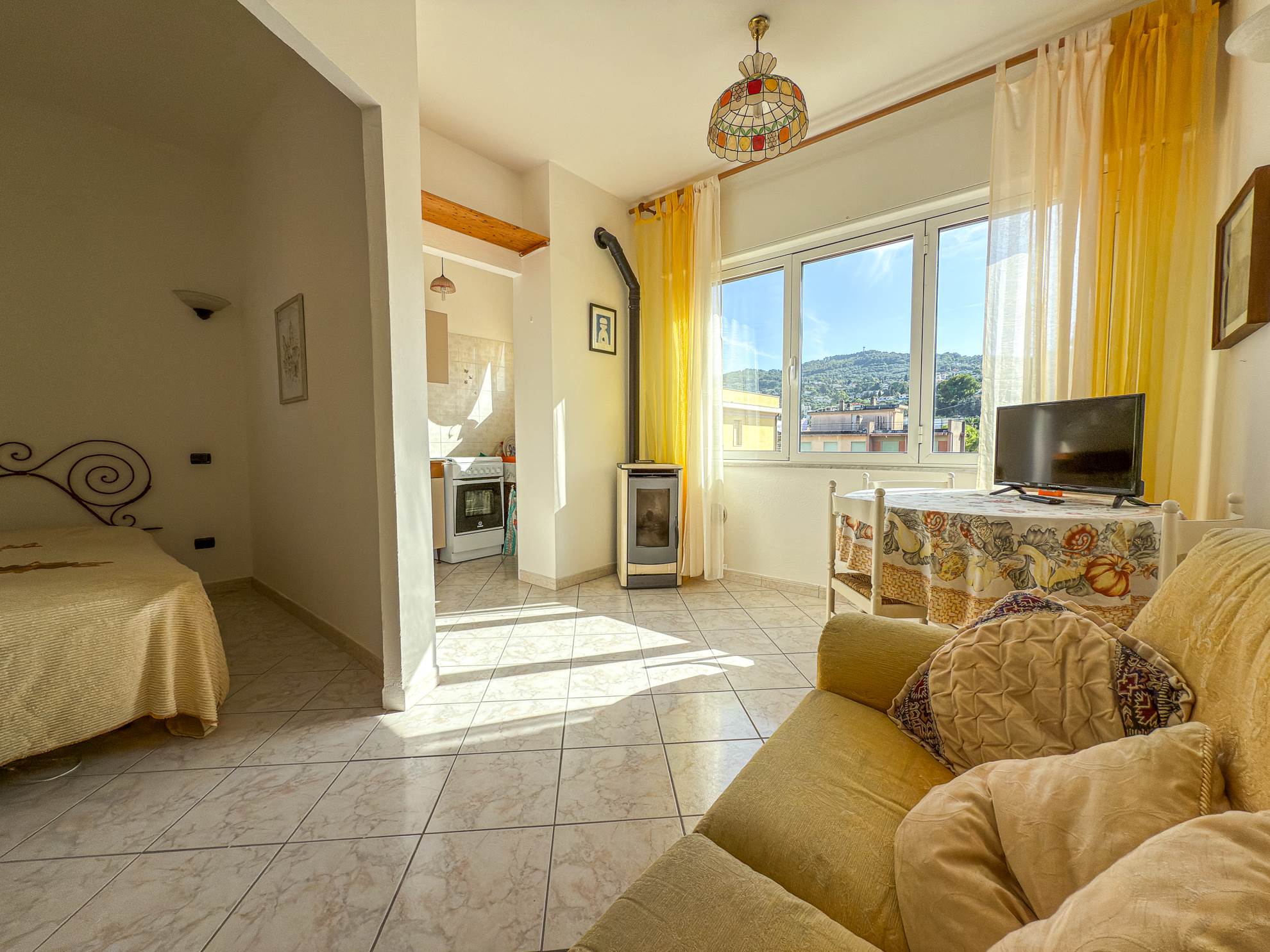 - Soggiorno con zona cottura e ampio finestrone a tre ante
