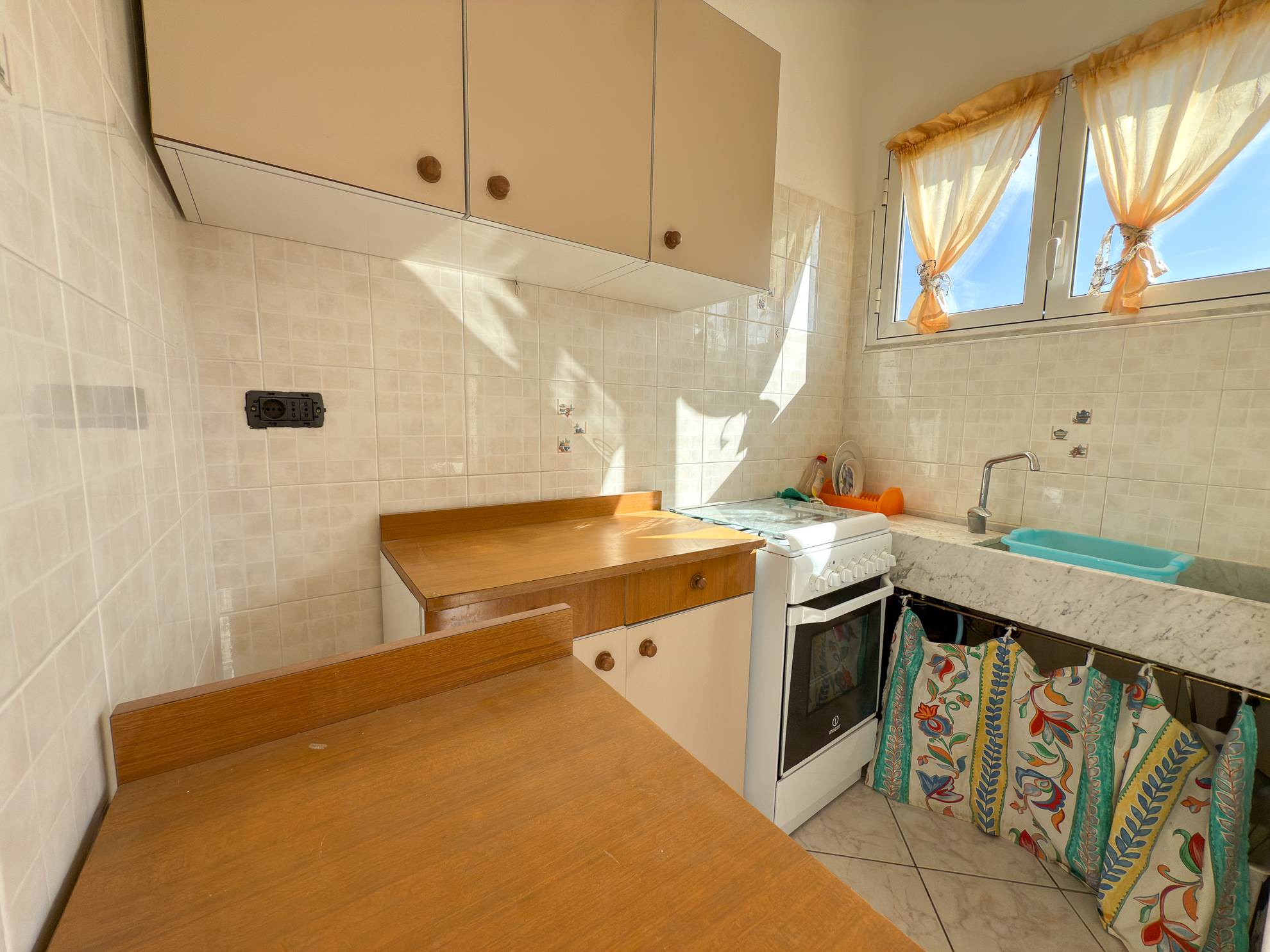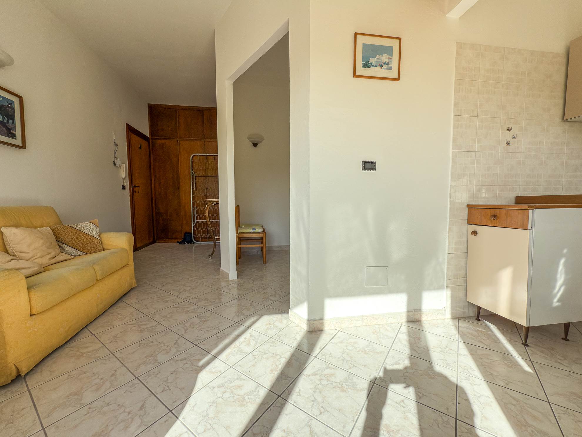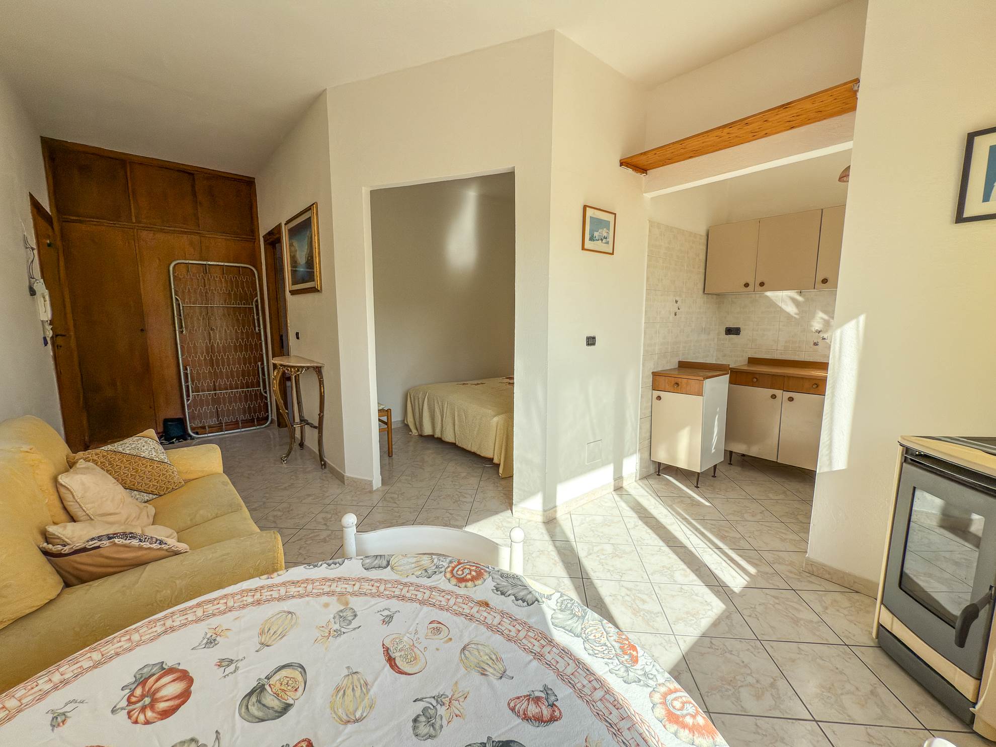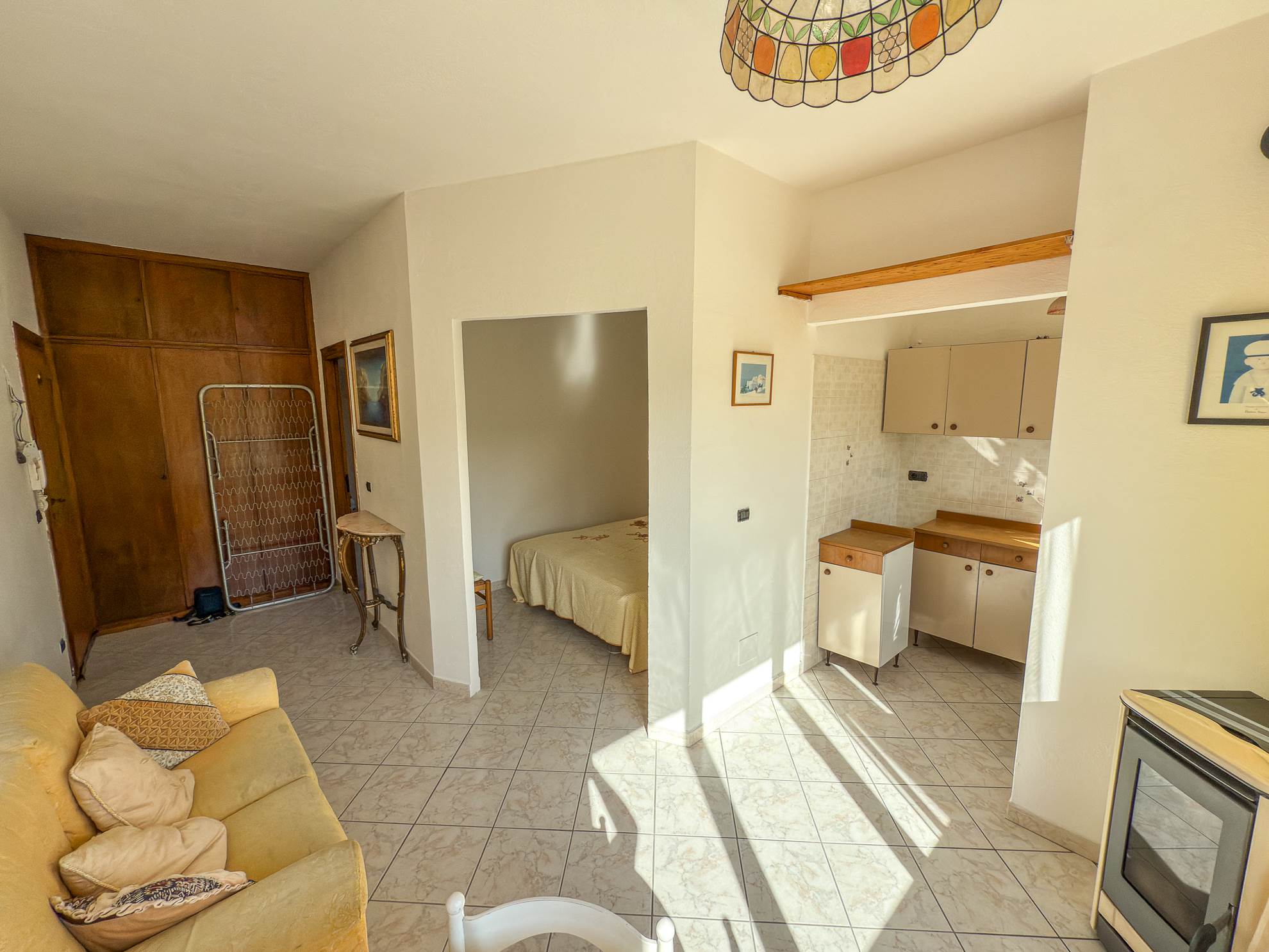 - Soggiorno con zona cottura e ampio finestrone a tre ante